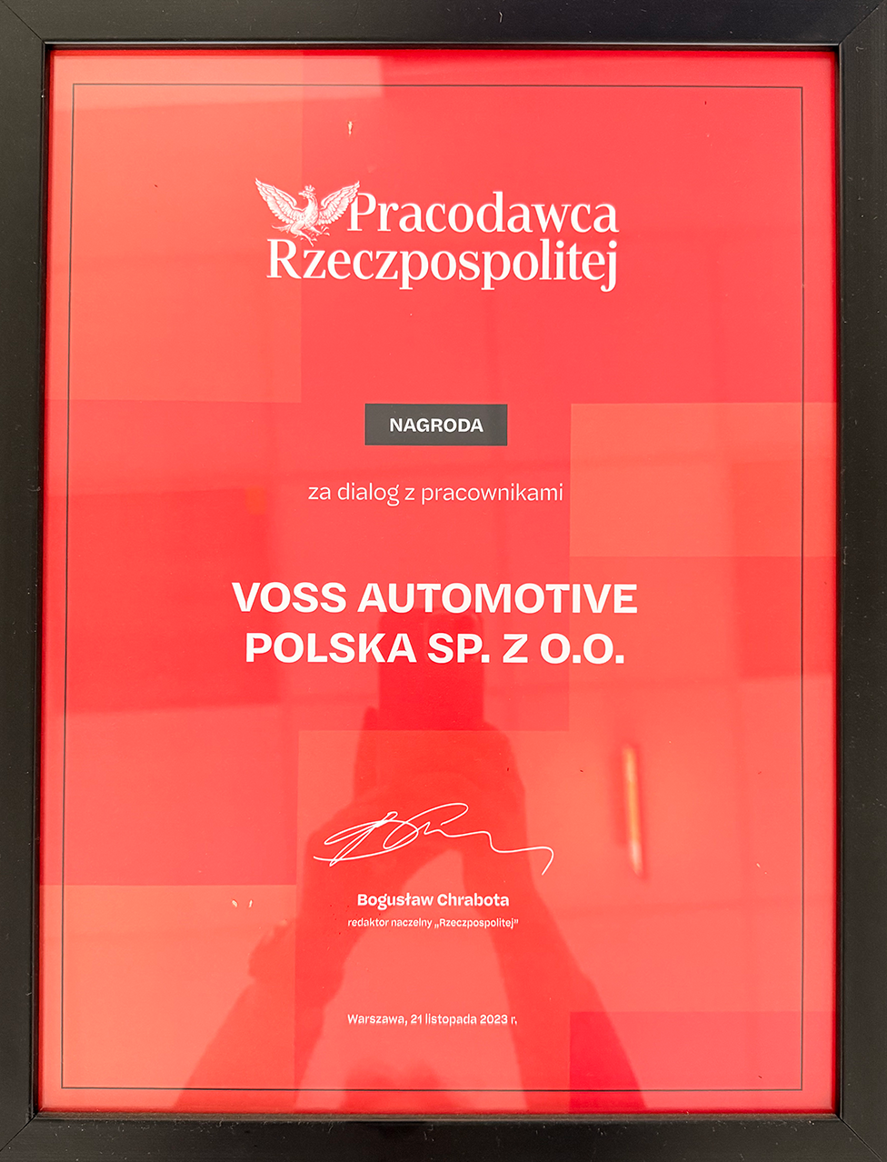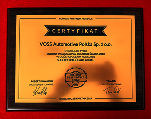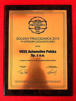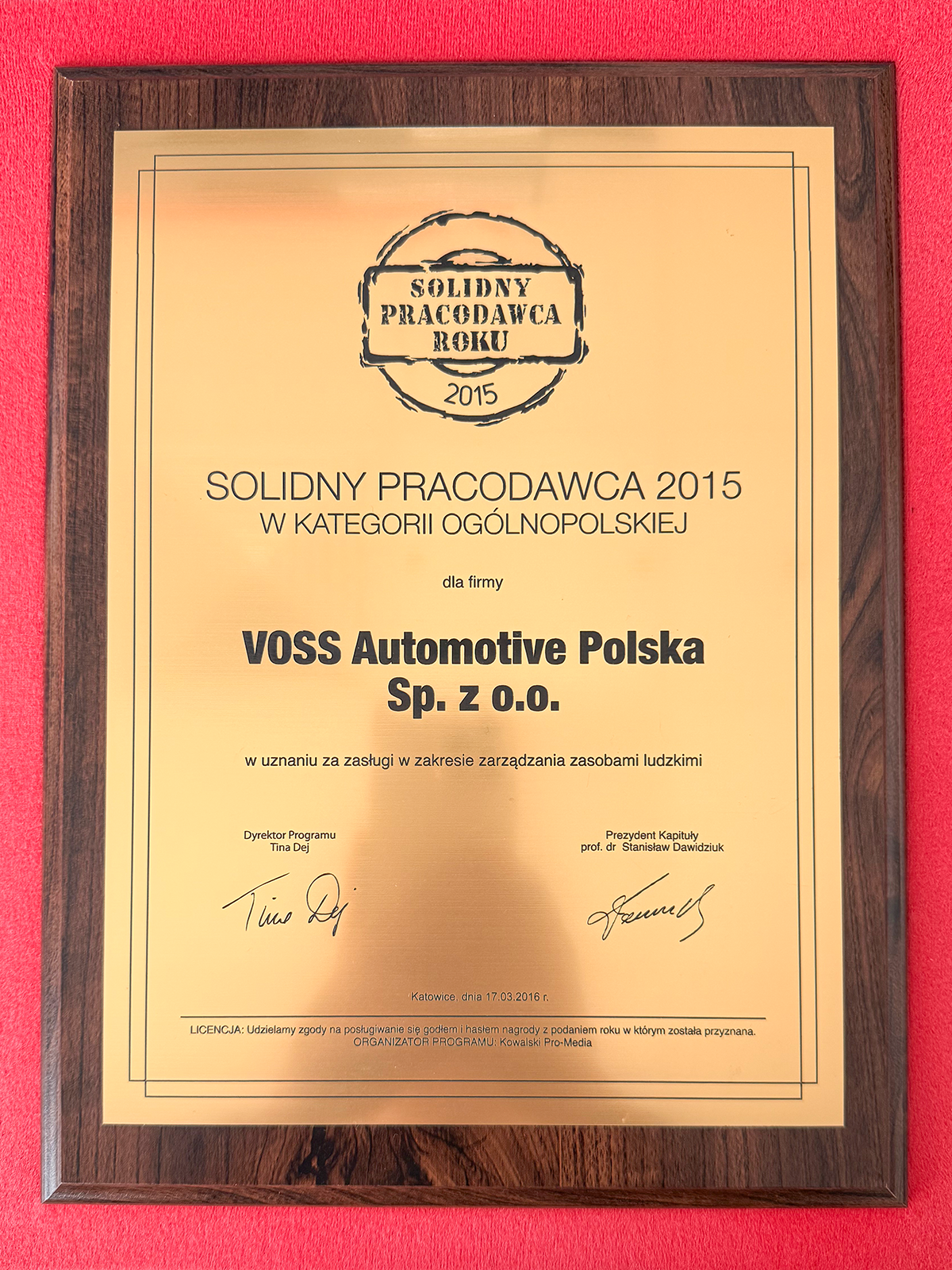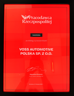 Przyznany tytuł przez Kaizen Institiute oznacza, że VOSS Automotive Polska Sp. z o.o. osiągnął najwyższy stopień realizacji wymagań 5S poprzez wdrożenie i ciągły rozwój. Kwalifikuje to nas jako jedną z wiodących organizacji w benchmarkingu najlepszych firm.